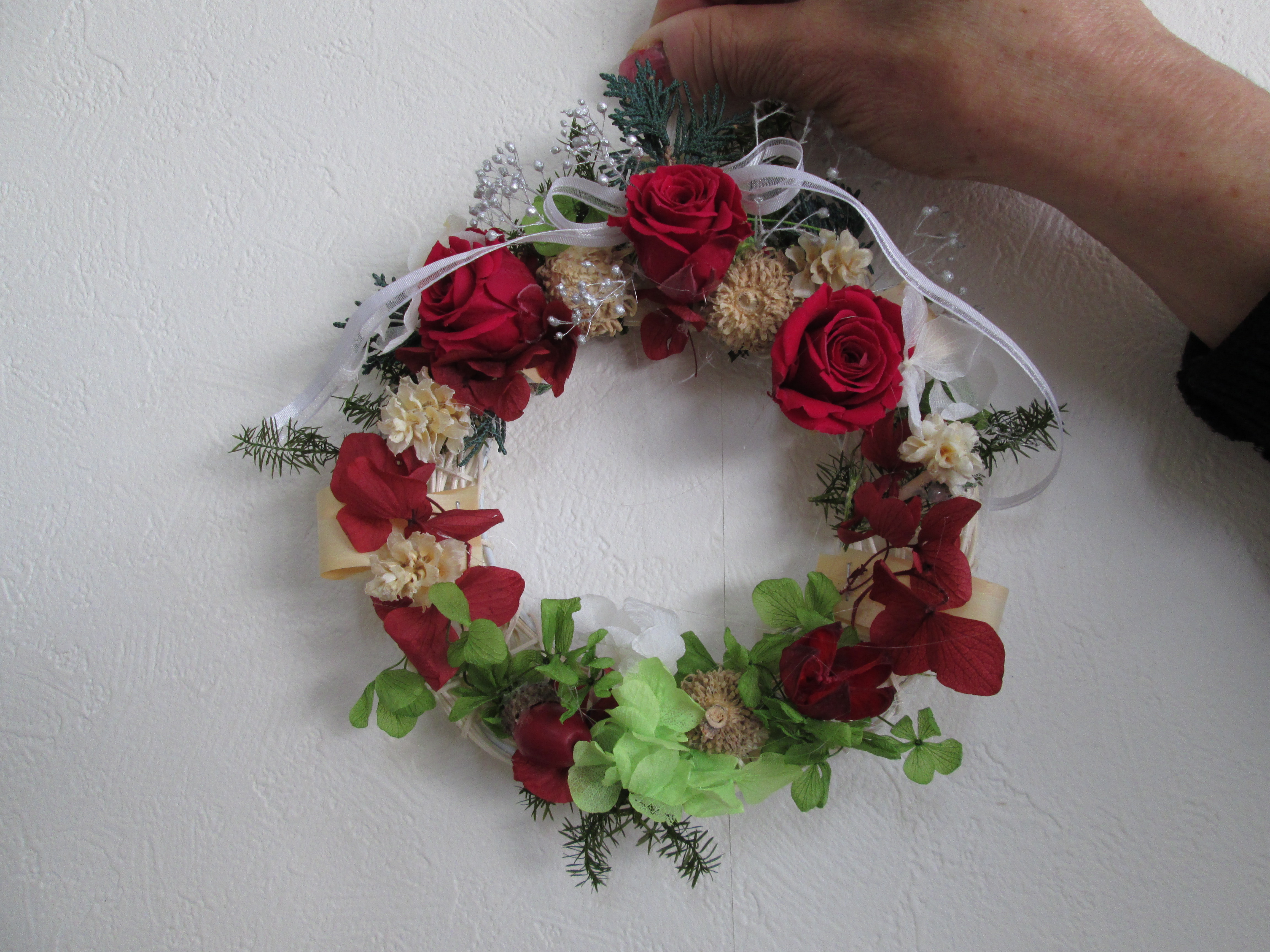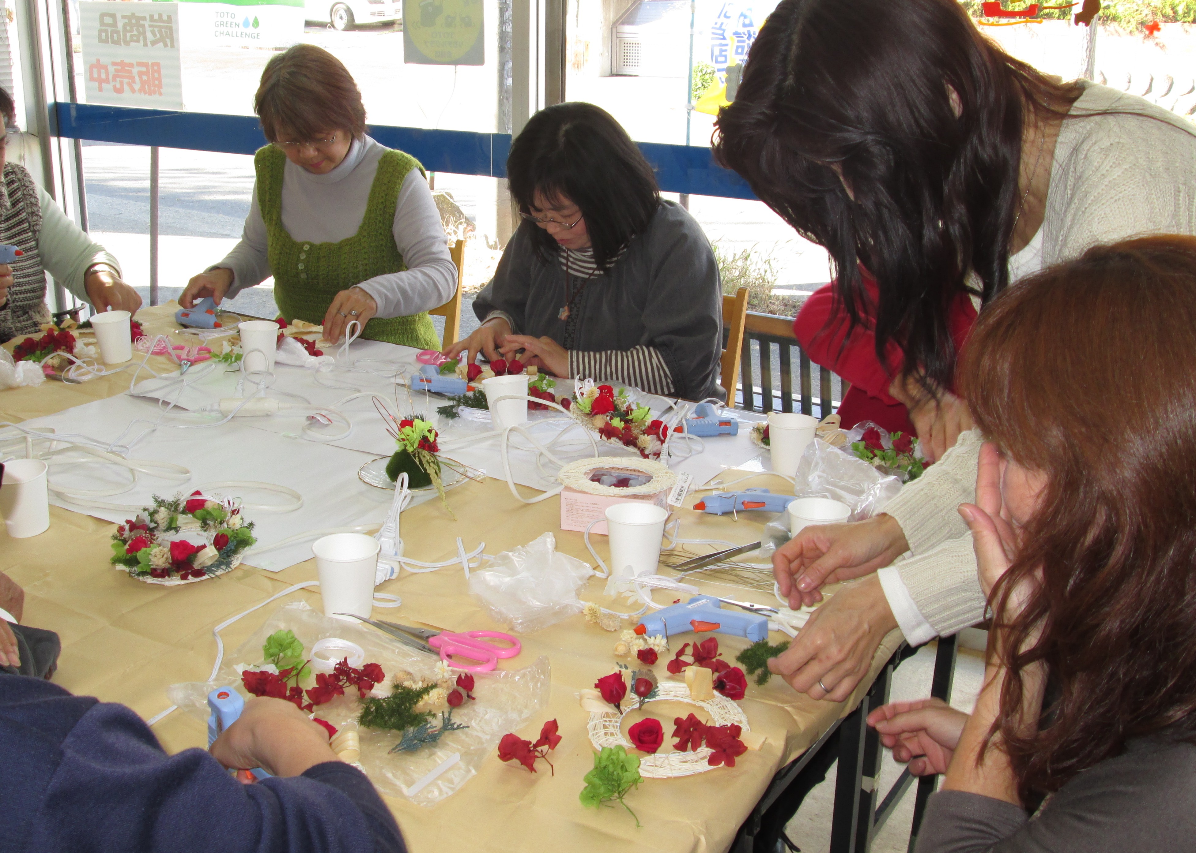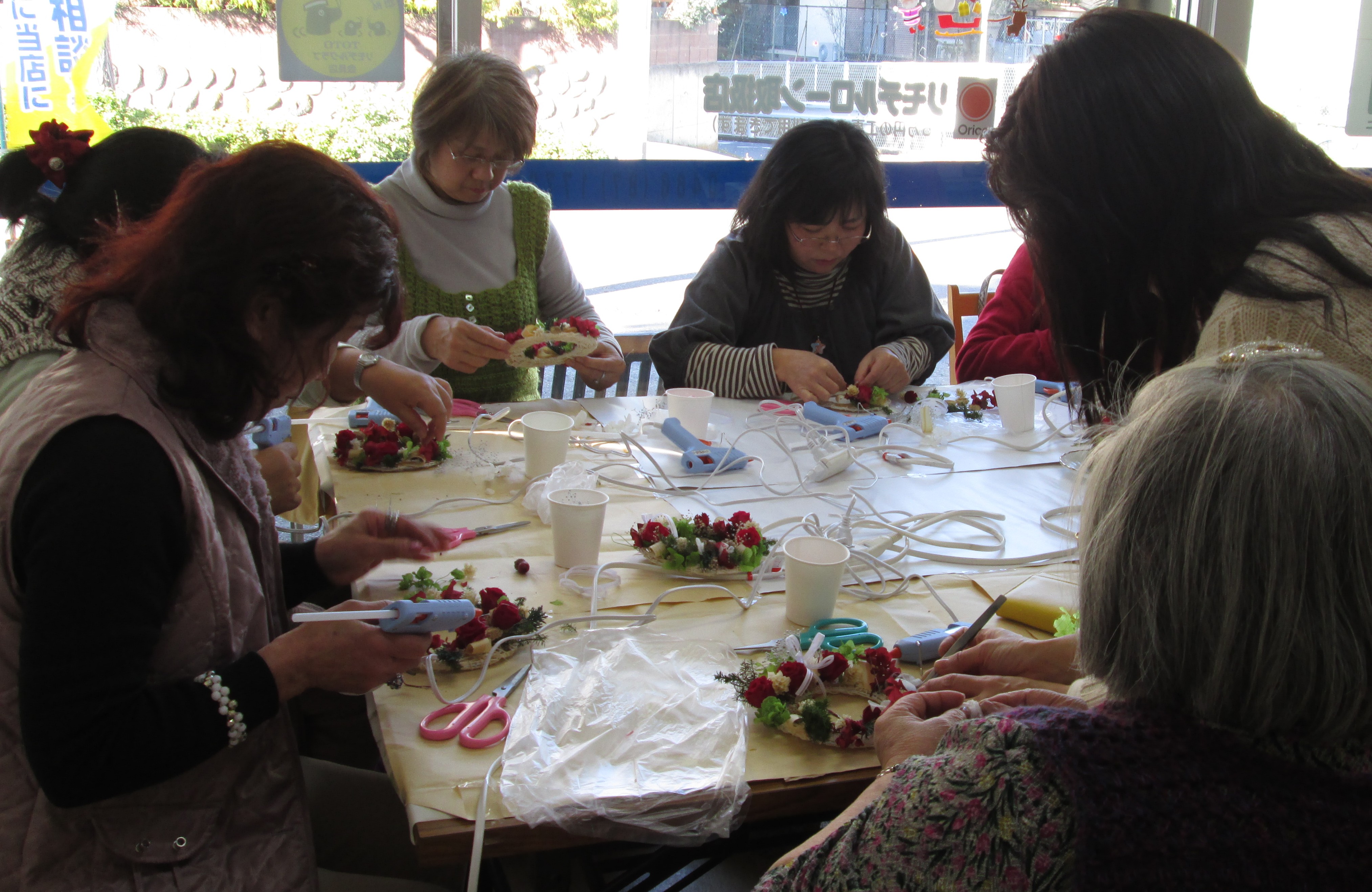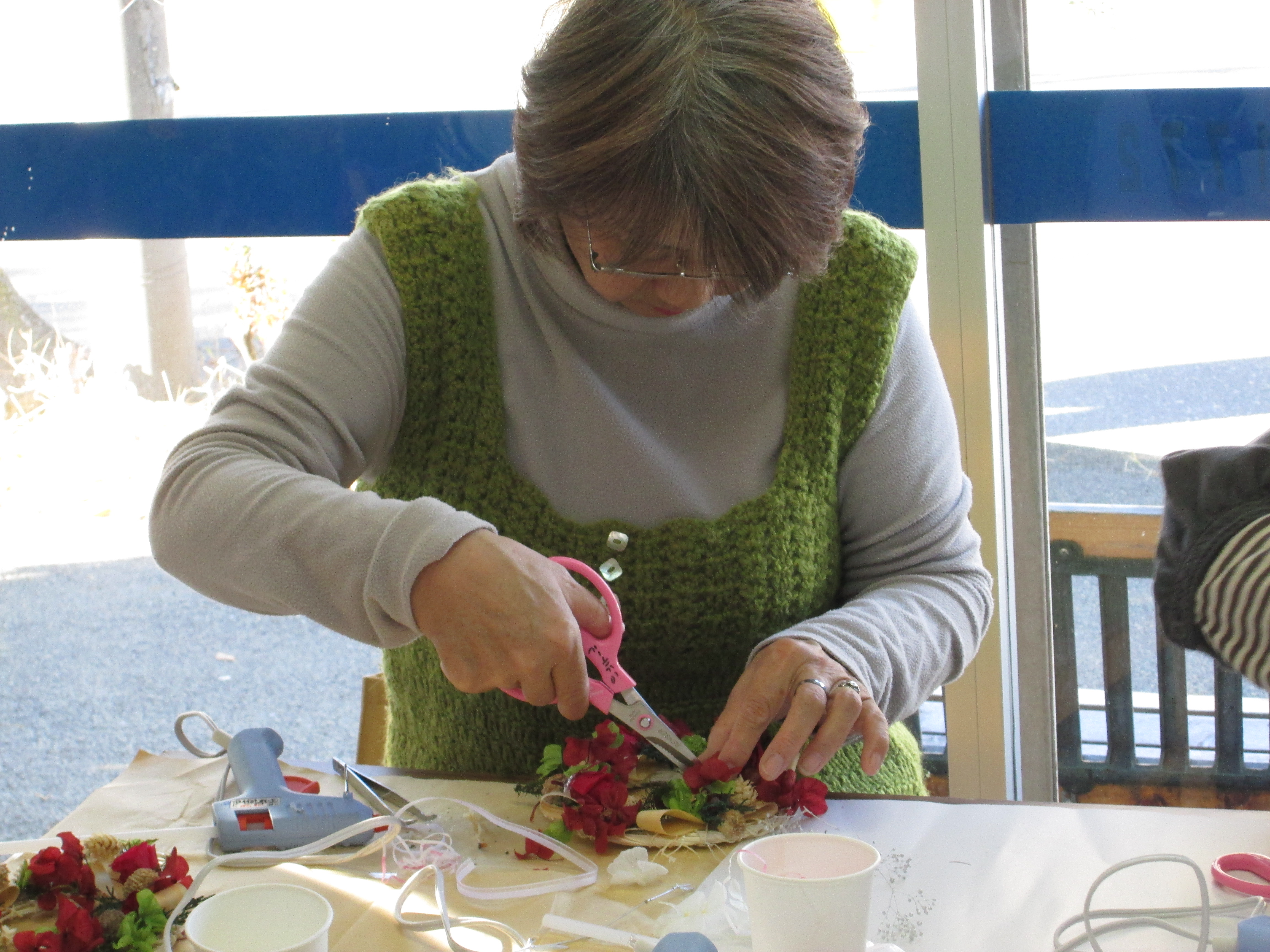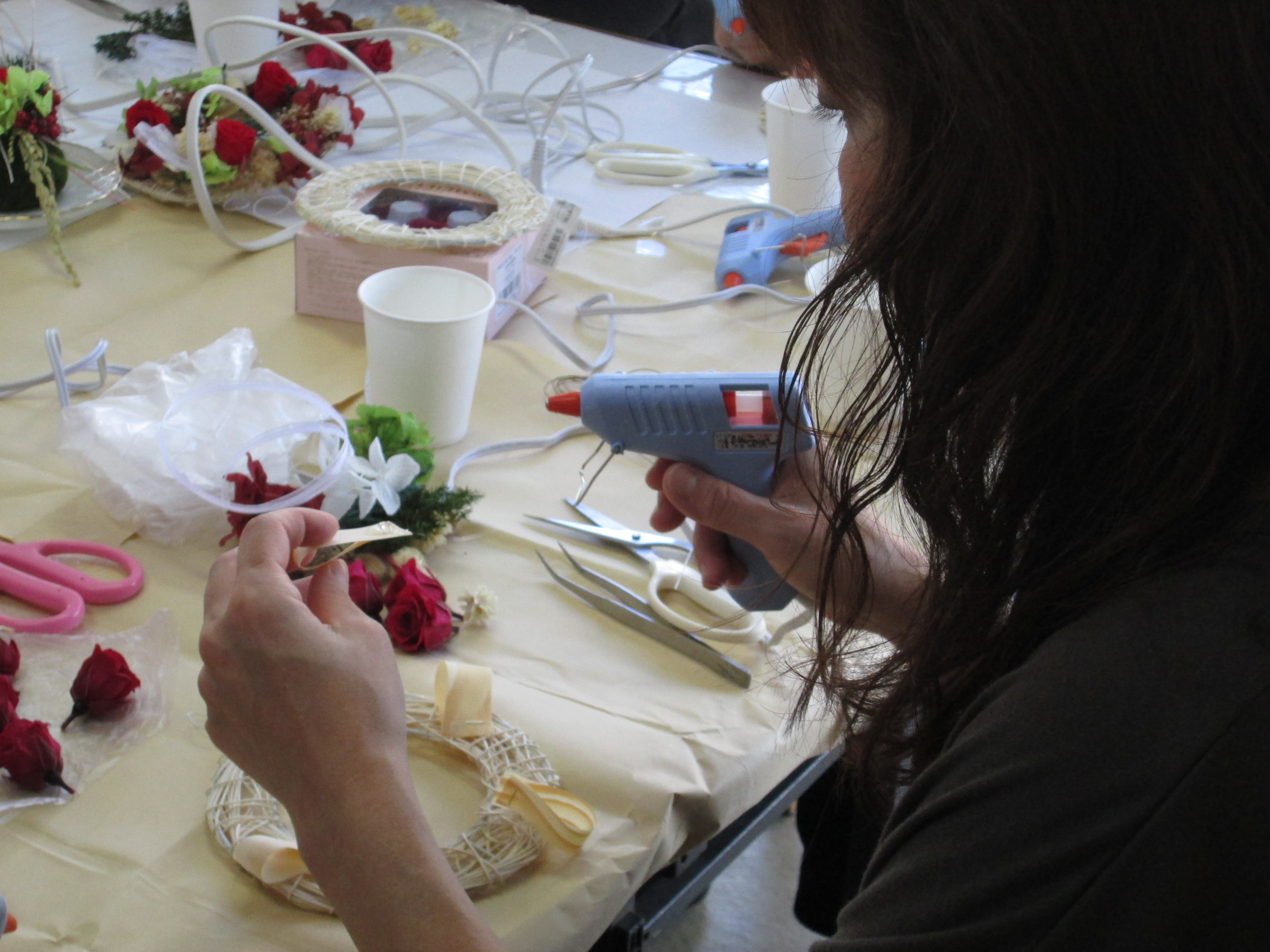 今月は講師にフラワー装飾一級技能士の金子美枝先生を迎えて「クリスマスリース」づくりを開催しました。