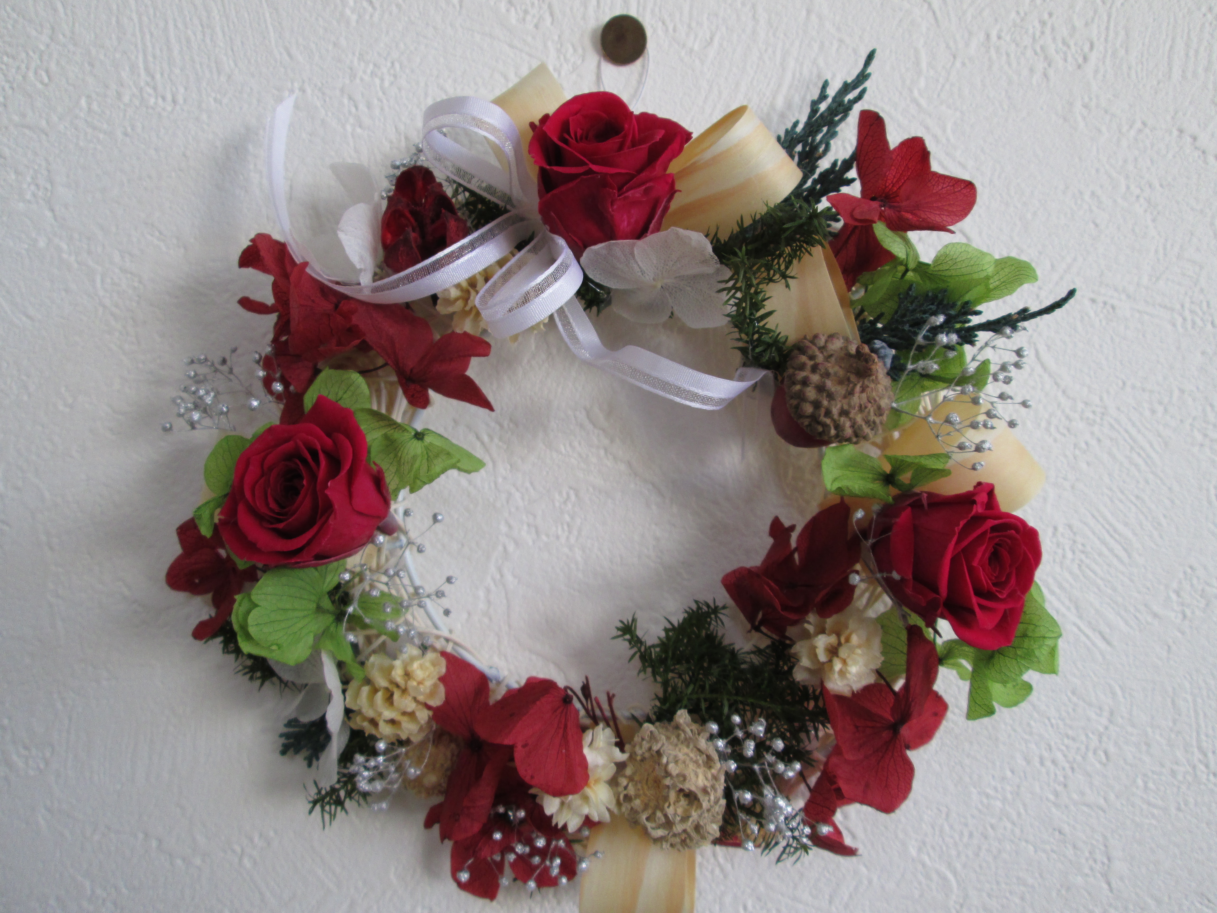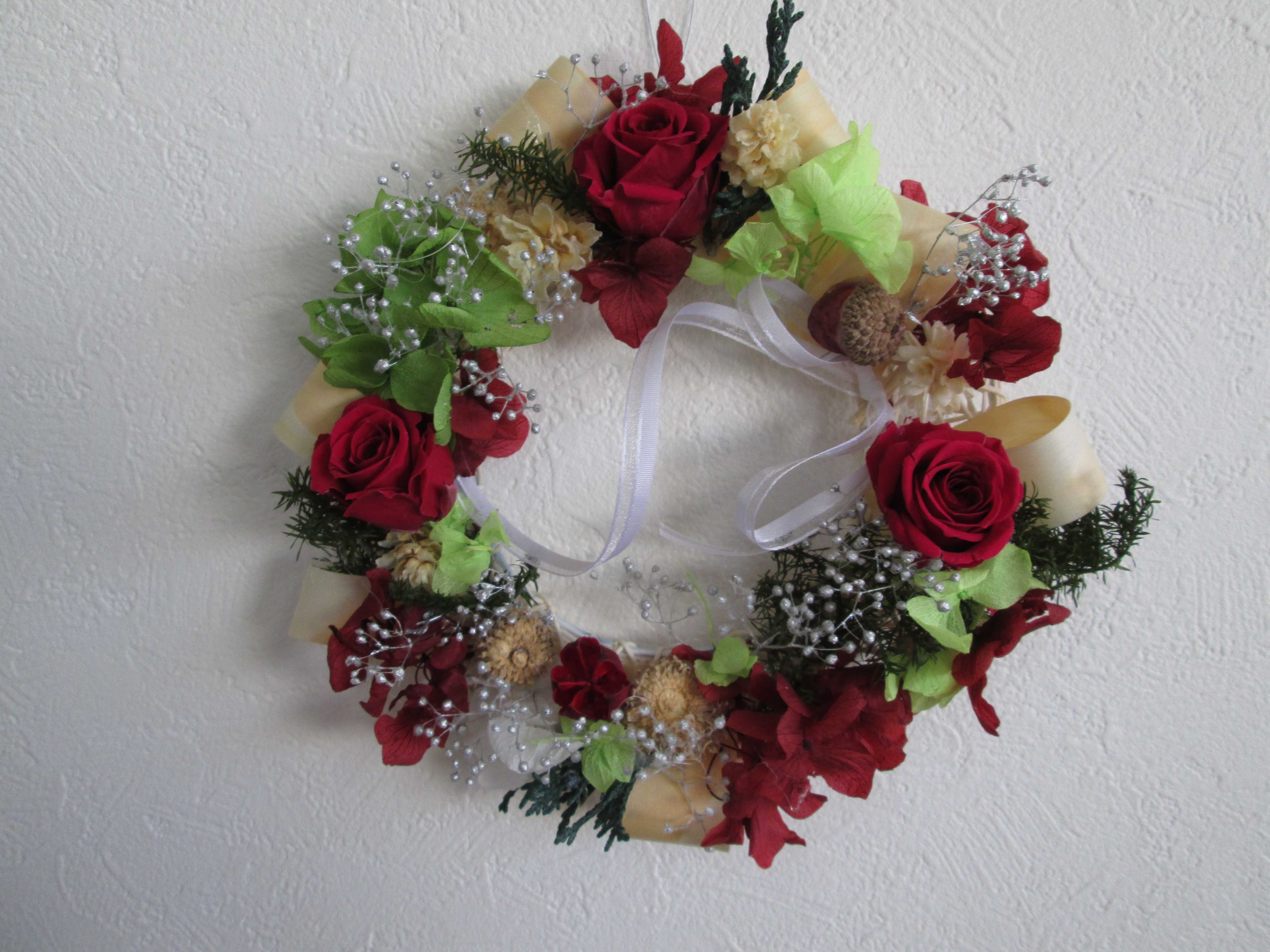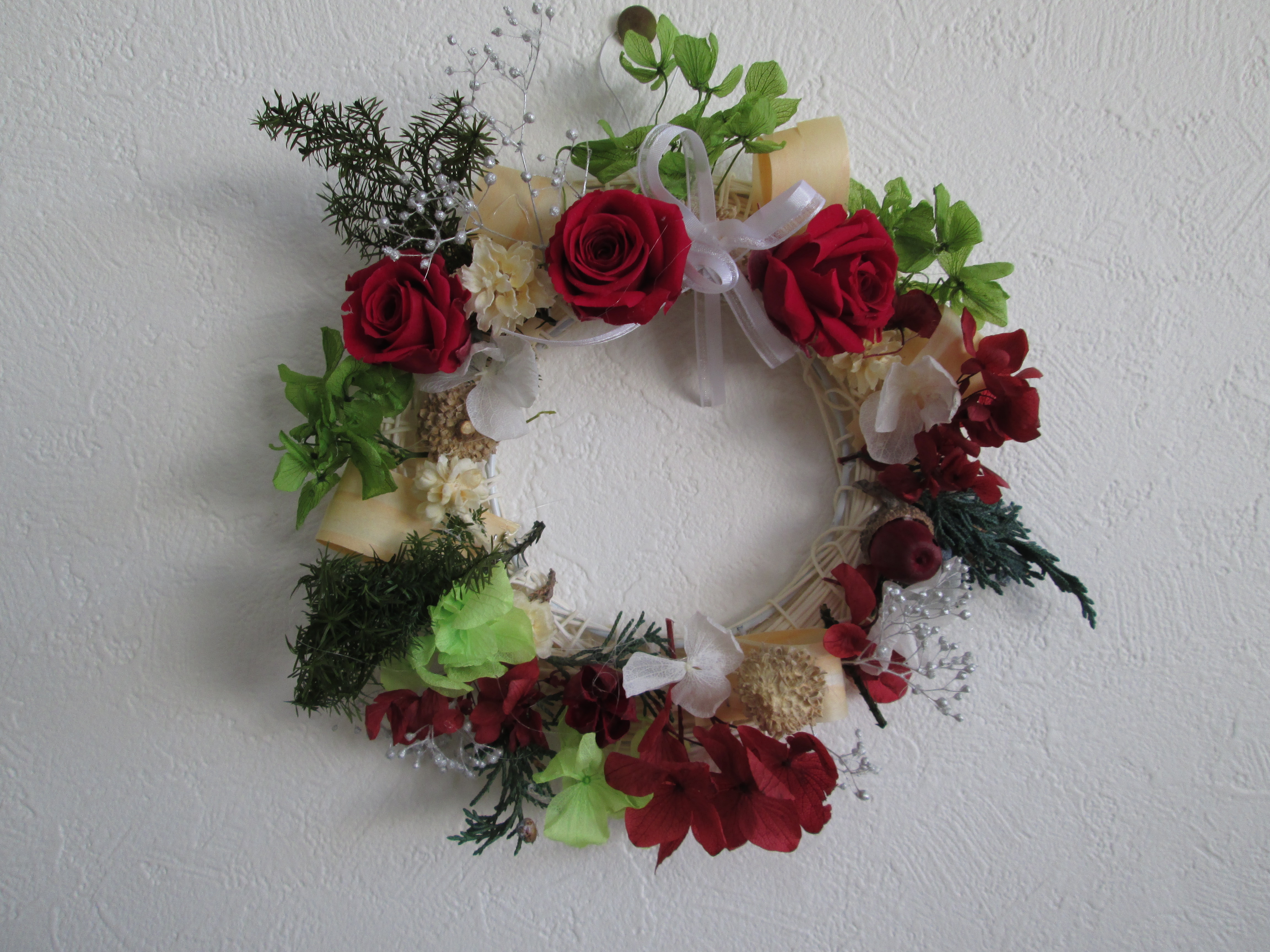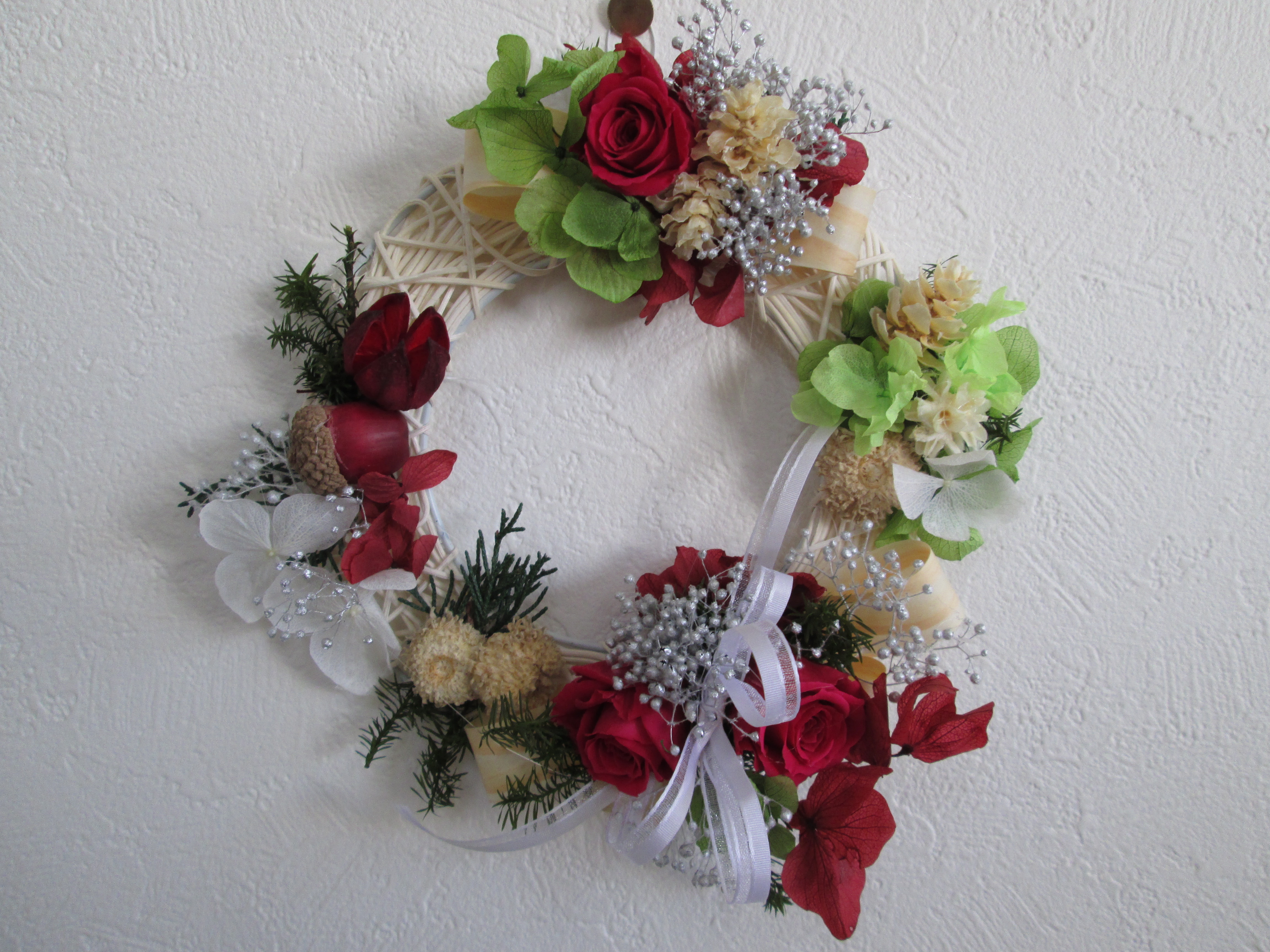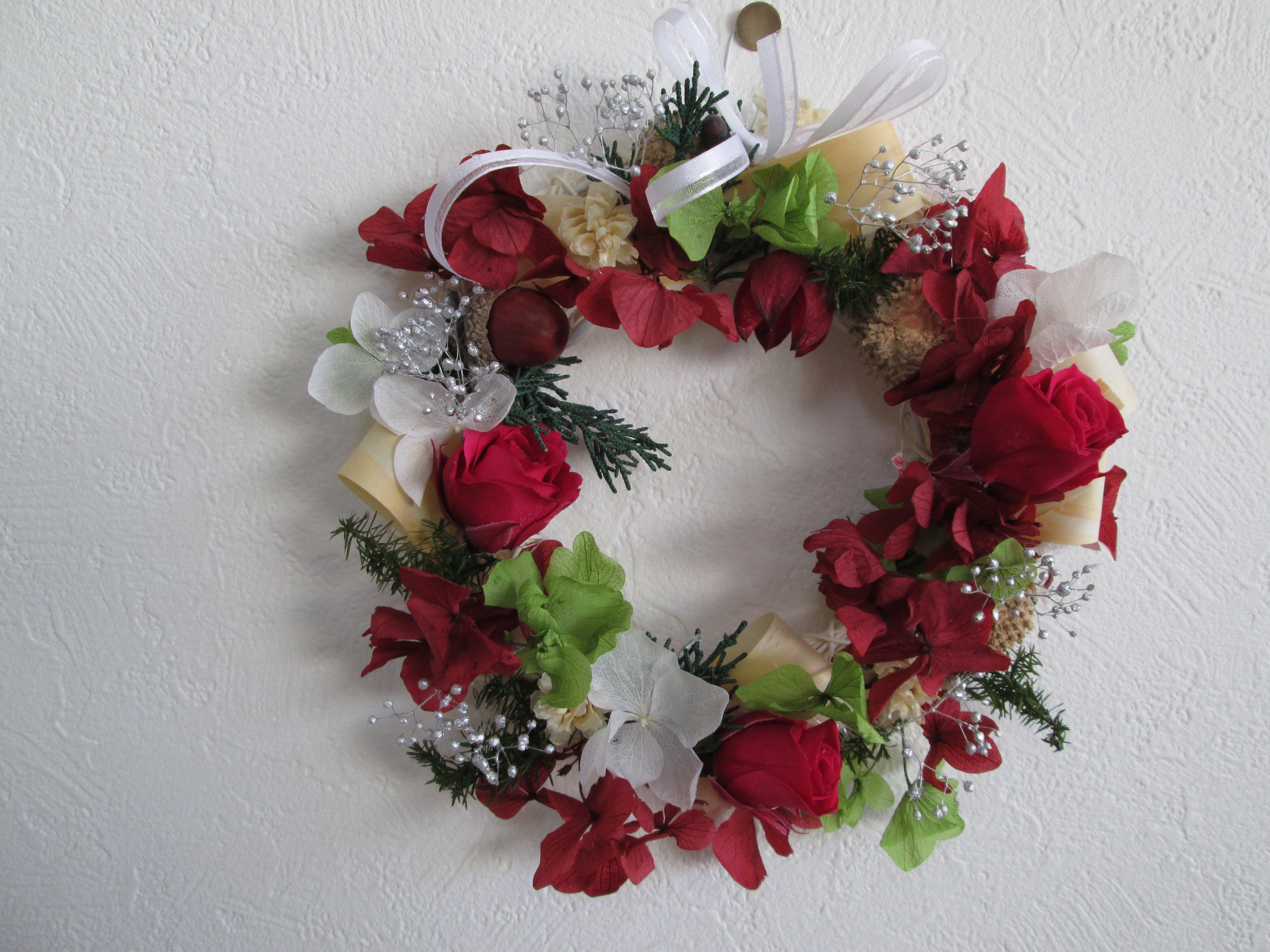 同じ材料を使っても、それぞれ個性が出てかわいいリースができました。